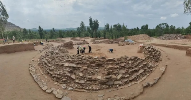2023年11月,位于赤峰市敖漢旗下洼鎮(zhèn)元寶山積石冢被盜,當(dāng)?shù)匚奈锕芾聿块T上報后,2024年初內(nèi)蒙古自治區(qū)文物考古研究院經(jīng)自治區(qū)文物局批準,以搶救性考古發(fā)掘向國家文物局申請并得以批準。4月底,組隊對該地點及周邊開展調(diào)查并進行了勘探。5月正式啟動發(fā)掘,截止目前已明確該地點為一處集墓葬建筑與祭祀建筑一體的紅山文化遺存。也是目前所知內(nèi)蒙古自治區(qū)唯一的一處南方北圓、南壇北冢的紅山文化晚期建筑遺存。