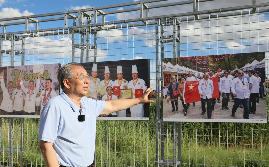 7月28日,第14屆《食色世界》攝影大展,在四子王旗格根塔拉草原旅游中心開展。圖為本次攝影展策展人、中國攝影家協(xié)會會員、中國人像攝影學會副會長、內蒙古攝影家協(xié)會名譽主席郎立興正在介紹展品。