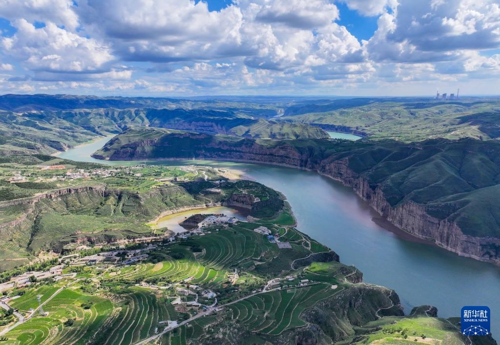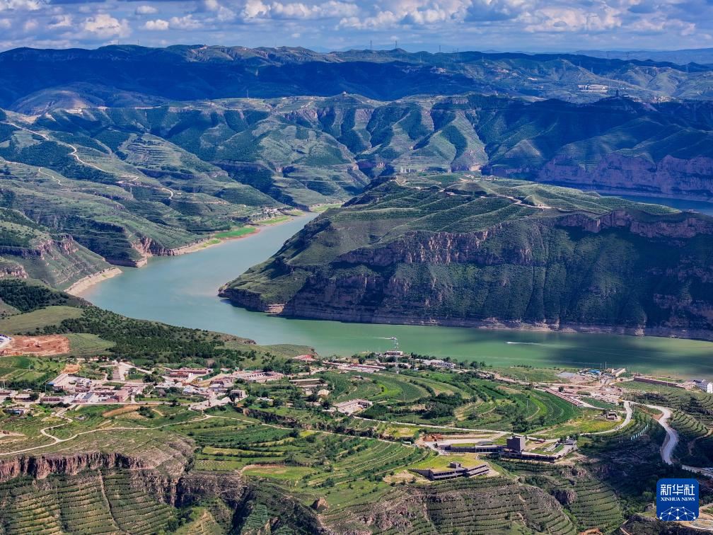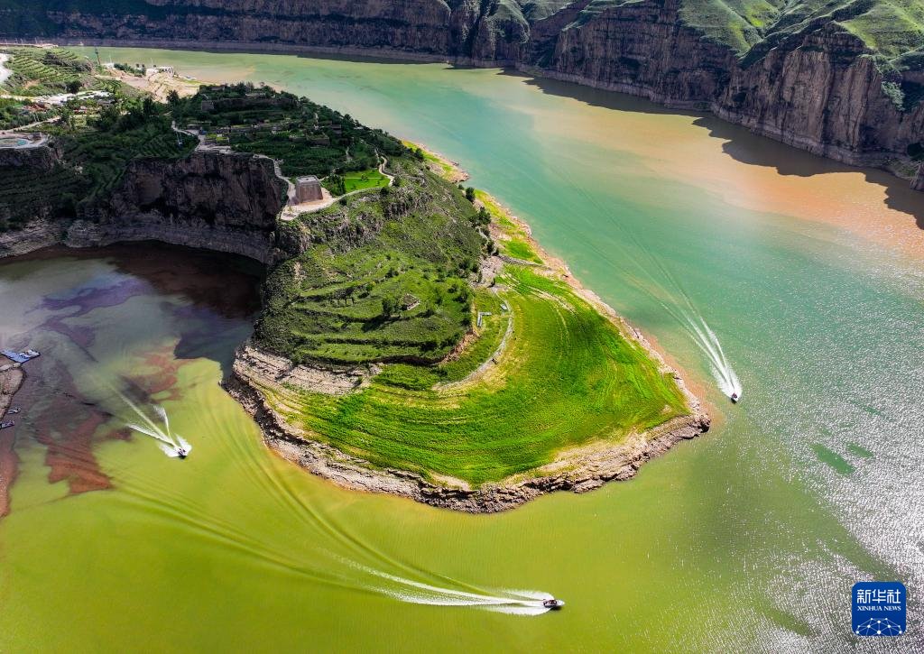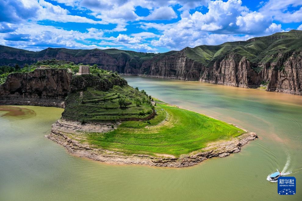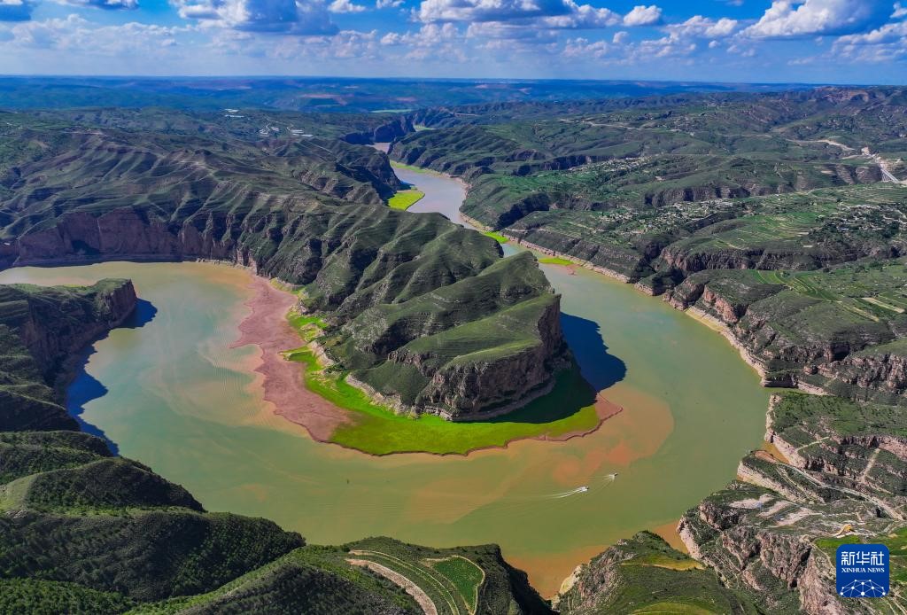 ??這是8月12日拍攝的黃河老牛灣風(fēng)光(無(wú)人機(jī)照片)。