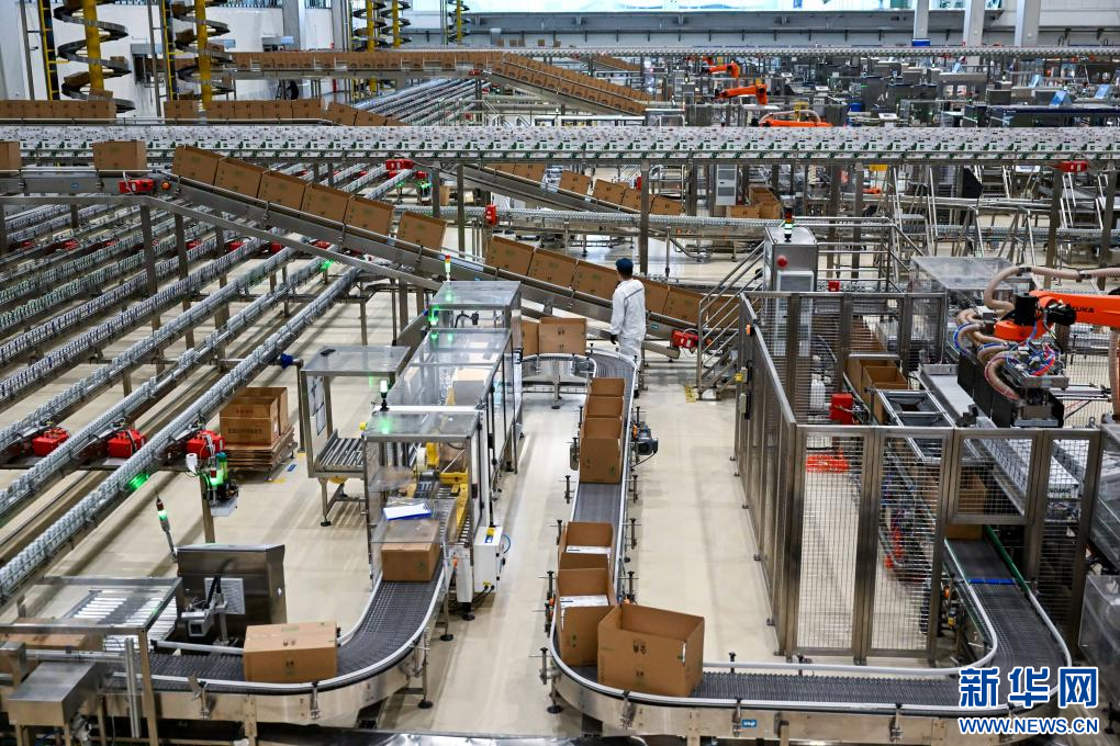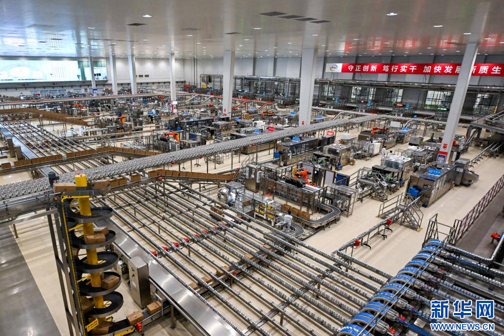 這是1月9日拍攝的呼和浩特市伊利現(xiàn)代智慧健康谷液態(tài)奶全球智造標(biāo)桿基地生產(chǎn)車間。