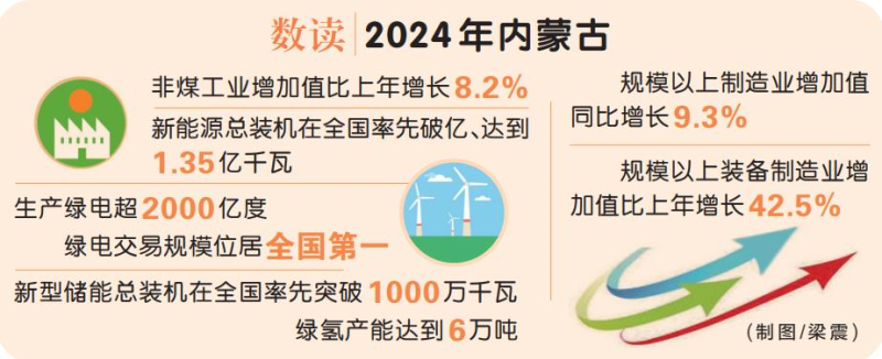 內蒙古以新能源全產業(yè)鏈發(fā)展為牽引推進產業(yè)結構優(yōu)化升級,下大氣力培育非煤、非資源型產業(yè),以新動能促進新發(fā)展,2024年,全區(qū)非煤工業(yè)增加值比上年增長8.2%?! ?/p>