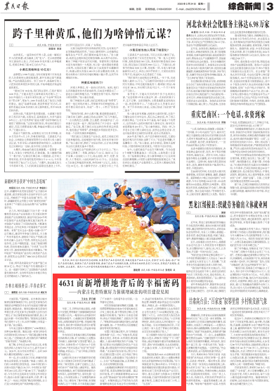 2025年2月24日,《農(nóng)民日報》第3版刊發(fā)題為《4631畝新增耕地背后的幸福密碼——內(nèi)蒙古扎賚特旗好力保鎮(zhèn)增減掛鉤項目建設(shè)見聞》的文章,報道了內(nèi)蒙古興安盟扎賚特旗好力保鎮(zhèn)以土地整治為突破口,創(chuàng)新實施“五型安置”模式,讓水田村、先鋒村等4個行政村16個自然屯的898戶村民實現(xiàn)從“憂居”到“優(yōu)居”的跨越,村民過上了“出門種地,回家住樓”的新生活。