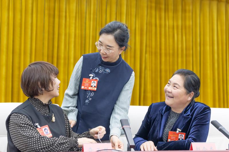 3月7日,全國人大代表胡海娟(左)建議,通過在各級(jí)學(xué)校設(shè)立專職家庭教育指導(dǎo)教師等舉措,強(qiáng)化家庭教育指導(dǎo),推動(dòng)家校社協(xié)同育人,促進(jìn)青少年健康成長。記者 于濤 攝