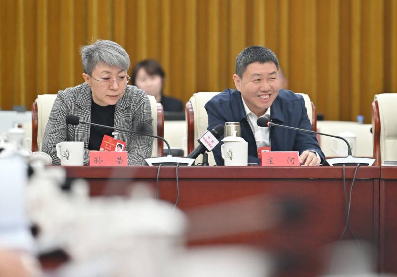 3月7日,全國人大代表莊河(右)說,中國鐵路呼和浩特局集團(tuán)有限公司將積極落實(shí)政府工作報(bào)告的相關(guān)要求,加強(qiáng)鐵路基礎(chǔ)設(shè)施建設(shè),優(yōu)化客運(yùn)產(chǎn)品,實(shí)現(xiàn)多樣供給,大力發(fā)展鐵路現(xiàn)代物流,發(fā)揮好鐵路對(duì)推動(dòng)經(jīng)濟(jì)社會(huì)高質(zhì)量發(fā)展的支撐保障作用。記者 馬建兵 攝
