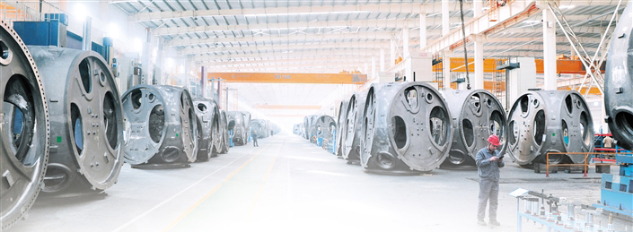 3月7日,走進(jìn)科爾沁工業(yè)園區(qū),在蒙東(通遼)風(fēng)電裝備制造產(chǎn)業(yè)基地內(nèi)蒙古龍馬鑄造有限公司精工車(chē)間里,各條生產(chǎn)線有序運(yùn)轉(zhuǎn),工人們正在進(jìn)行風(fēng)電輪轂加工、底座側(cè)鏜加工等作業(yè)。“今年春節(jié),我們只休息了兩天,從初二起,全生產(chǎn)線便滿(mǎn)負(fù)荷運(yùn)轉(zhuǎn),全力追趕訂單進(jìn)度?!眱?nèi)蒙古龍馬制造有限公司副總經(jīng)理時(shí)偉介紹道。