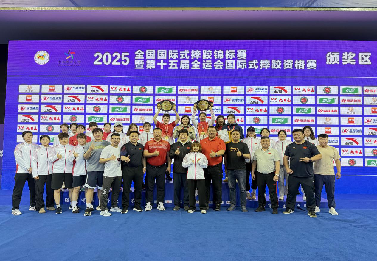 內(nèi)蒙古女子自由式摔跤隊(duì)合影。(內(nèi)蒙古體育局供圖)
