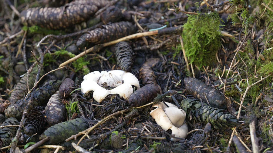 山間清風(fēng)裹挾著草木與泥土的濕潤氣息撲面而來,腳下的步道旁,松塔與翠綠的雜草間,不時(shí)冒出一朵朵野生蘑菇,宛如散落在林間的“小傘”,為靜謐的山野增添了幾分靈動(dòng)。