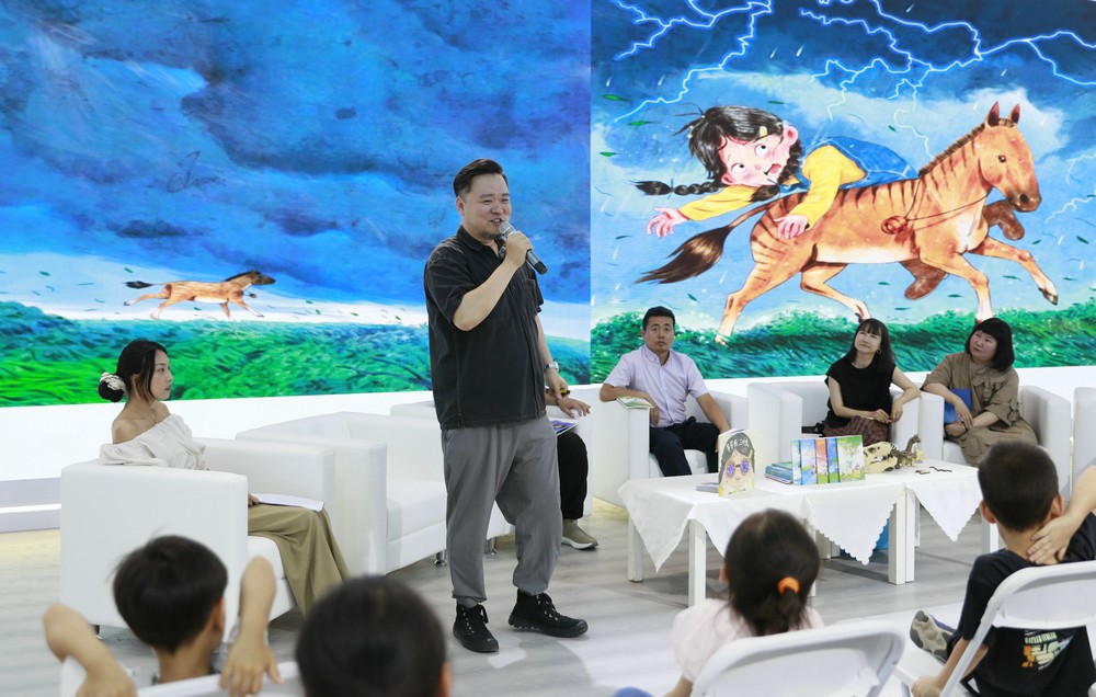 內(nèi)蒙古出版集團(tuán)展區(qū)正在舉行新書分享