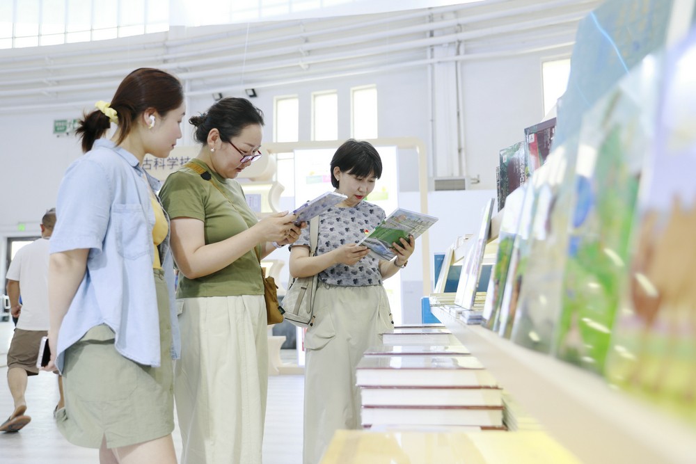 讀者在內(nèi)蒙古出版集團(tuán)展區(qū)閱讀圖書