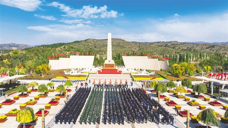 秋高氣爽,松柏蒼翠。烈士紀(jì)念碑廣場莊嚴(yán)肅穆,“人民英雄永垂不朽”八個金色大字在陽光下熠熠生輝。