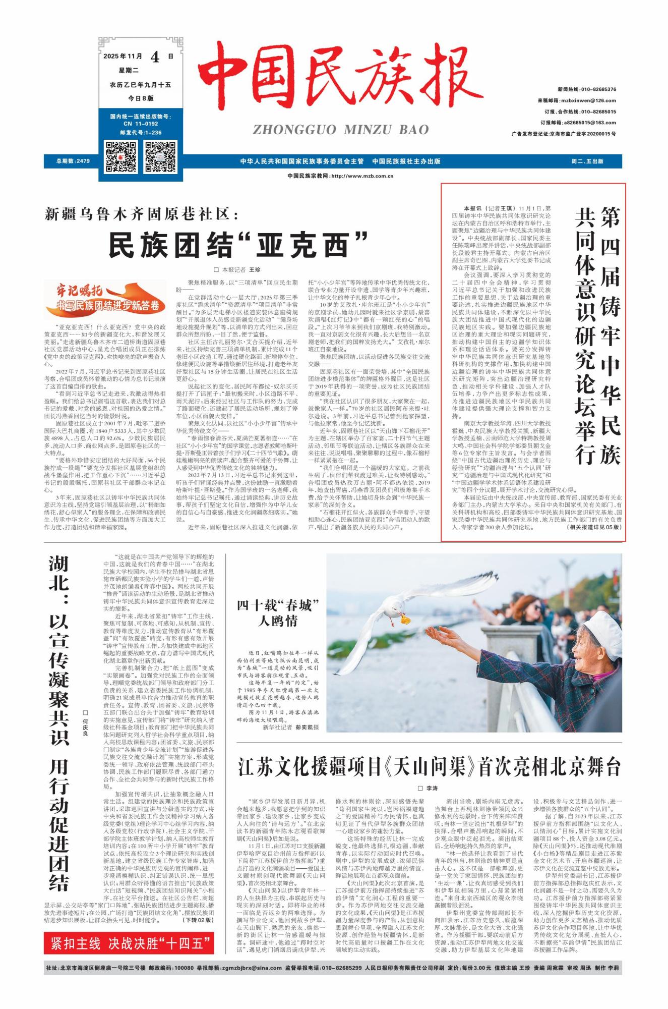 2025年11月4日,《中國民族報》頭版刊發(fā)題為《第四屆鑄牢中華民族共同體意識研究論壇舉行》的文章,報道了第四屆鑄牢中華民族共同體意識研究論壇于11月1日在內蒙古自治區(qū)呼和浩特市舉行,主題聚焦“邊疆治理與中華民族共同體建設”。