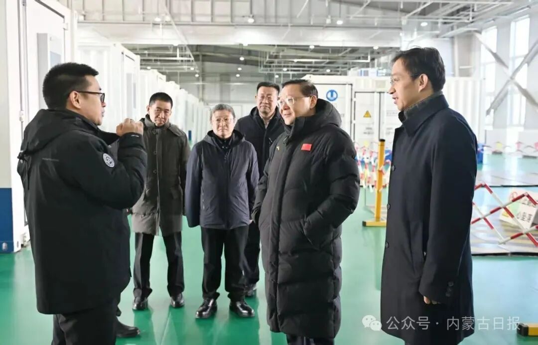 在三峽現(xiàn)代能源創(chuàng)新示范園,王偉中聽取新能源開發(fā)建設(shè)運營和“源網(wǎng)荷儲”技術(shù)研發(fā)應(yīng)用等情況介紹。他說,要立足能源本質(zhì)安全,提高新能源開發(fā)水平,大力推進多種新型儲能技術(shù)開發(fā)和應(yīng)用示范,推動儲能產(chǎn)業(yè)降本增效,不斷塑強綠色發(fā)展優(yōu)勢。在世紀(jì)互聯(lián)烏蘭察布算力基地,王偉中詳細(xì)了解算力產(chǎn)業(yè)發(fā)展情況,強調(diào)要推動智能算力規(guī)模持續(xù)增長、算力經(jīng)濟發(fā)展壯大,加快電網(wǎng)數(shù)智化轉(zhuǎn)型,推進電力算力協(xié)同發(fā)展。在南大光電(烏蘭察布)有限公司,王偉中察看了高純電子級三氟化氮生產(chǎn)情況,希望企業(yè)持續(xù)加大研發(fā)投入力度,著力破解關(guān)鍵核心技術(shù)“卡脖子”問題,為高水平科技自立自強貢獻力量。