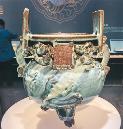 元代鈞窯“小宋自造”香爐。人民日報記者 張 棖攝