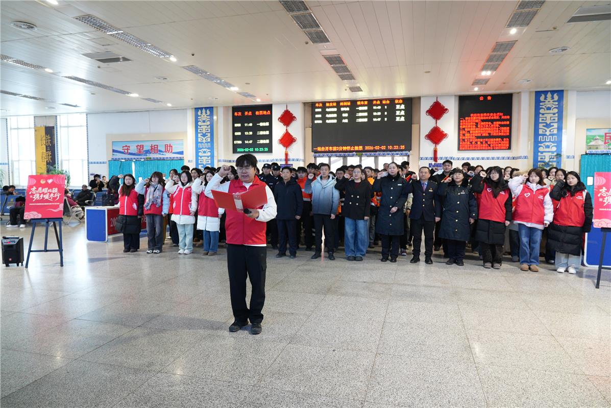2月22日,正月初六。興安盟烏蘭浩特市剛落下一場(chǎng)春雪,戶外寒風(fēng)凜冽,烏蘭浩特火車站候車大廳里卻暖意融融。正值春節(jié)返程高峰,拎著行囊的旅客步履匆匆,十余名身著紅馬甲的青年志愿者穿梭在人群中,幫拎行李、引導(dǎo)進(jìn)站、答疑解惑,成了春運(yùn)人潮里最亮眼的一抹“志愿紅”。