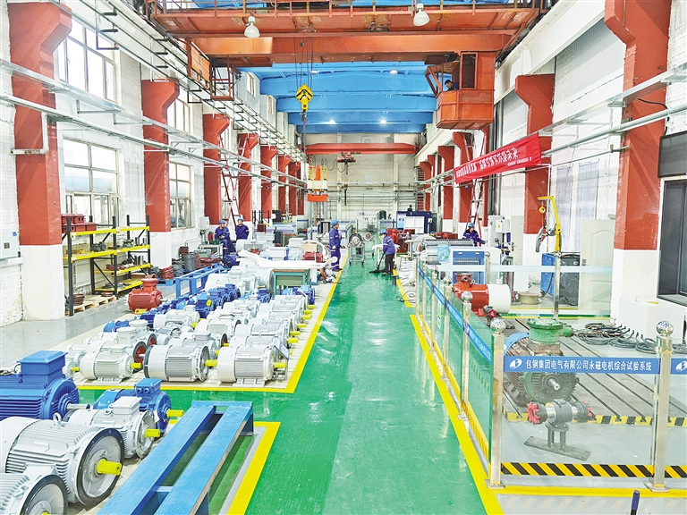 包鋼集團電氣有限公司稀土永磁電機組裝車間。