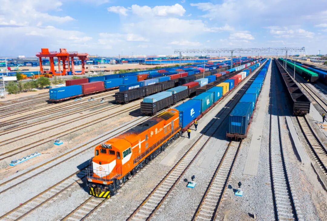 一列中歐班列在二連浩特鐵路口岸整裝待發(fā)
