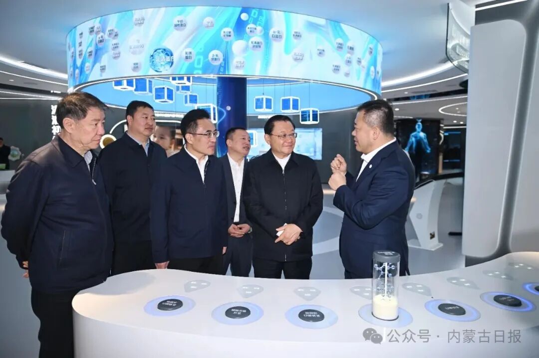 4月22日,自治區(qū)黨委書記、人大常委會主任王偉中在蒙牛集團(tuán)聽取企業(yè)全球布局、技術(shù)研發(fā)等情況介紹。草原云·內(nèi)蒙古新聞網(wǎng)記者 馬建兵 攝