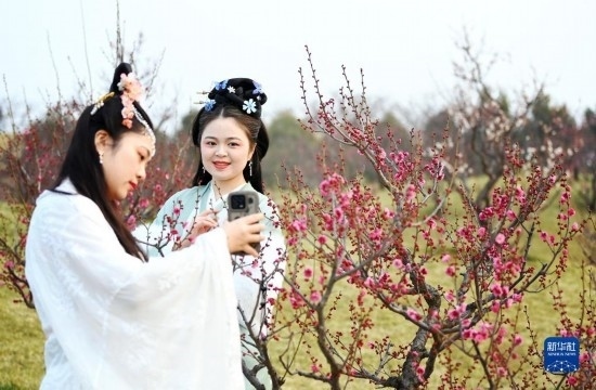 隨著氣溫回暖,陜西省西安市秦嶺終南山腳下長(zhǎng)安唐村內(nèi)四千余株梅花競(jìng)相綻放,吸引游人前來(lái)踏春賞花。長(zhǎng)安唐村位于西安市長(zhǎng)安區(qū)王曲街道,在古村落修復(fù)保護(hù)的基礎(chǔ)上形成了農(nóng)業(yè)、文化、旅游三大產(chǎn)業(yè),正在以農(nóng)文旅融合發(fā)展為帶動(dòng),促進(jìn)區(qū)域鄉(xiāng)村振興。