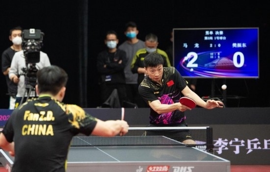 2月23日,中國乒乓球隊(duì)德班世乒賽選拔賽男單決賽中,馬龍(右)戰(zhàn)勝樊振東奪冠。新華社記者 陳鐘昊 攝