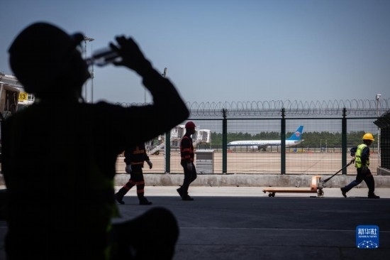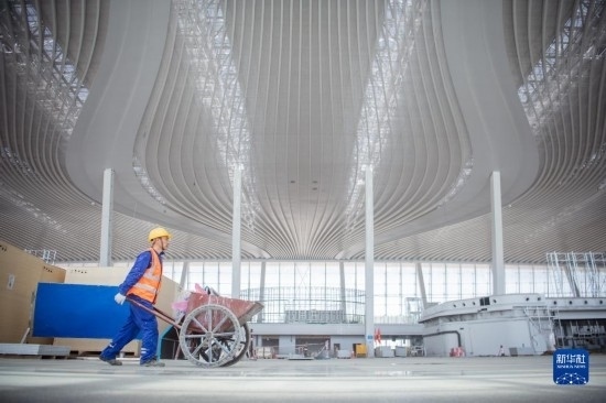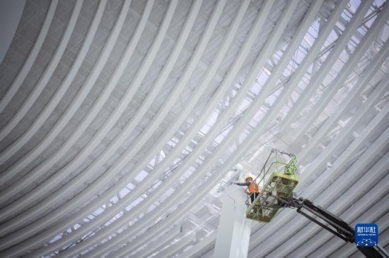 5月1日,中建八局的施工人員在長沙機場改擴建工程T3航站樓工程項目現場作業(yè)。
