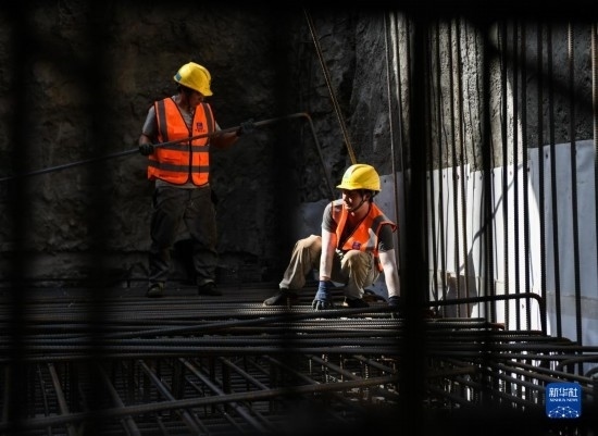 5月1日,在成都地鐵27號線一期工程項目花照壁北站施工現場,中建三局的工人在施工。