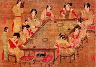 隨著茶在各個階層中的逐漸流行,到了隋唐時期,人們更加注重飲茶的儀式感。唐代陸羽所著《茶經(jīng)》的問世,更是將茶文化推向空前繁榮的發(fā)展時期,煎茶成為當時主要的飲茶方式。從《唐人宮樂圖》這幅經(jīng)典茶畫中可以看到雍容華貴的仕女和精美華麗的宮廷家具,富麗的設色更是將唐代審美展現(xiàn)得淋漓盡致。畫中,宮女們分坐于雕飾精美的月牙凳上,圍著寬大的長案或在吹篥,或彈琵琶,案上擺放著精致的茶盞,人們沉浸在美妙的樂音中享受著煎茶的美好時光。宮廷茶宴成為唐代宮廷休閑與文化生活的一部分,亦是唐代茶事活動的一個縮影,相應的茶家具種類和形式也逐漸豐富起來。此時用于飲茶的長案與月牙凳可以滿足多人共同參與,足見飲茶已經(jīng)具有了一定的社交屬性。