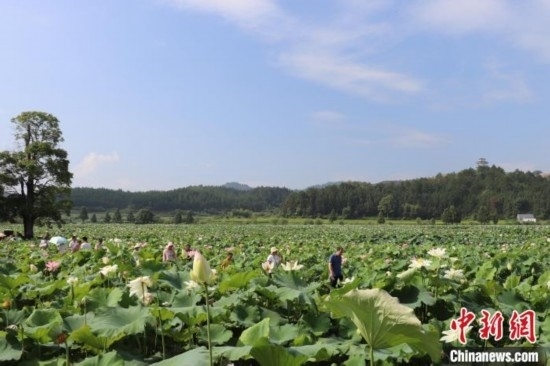 游客欣賞廣昌白蓮。熊錦陽 攝
