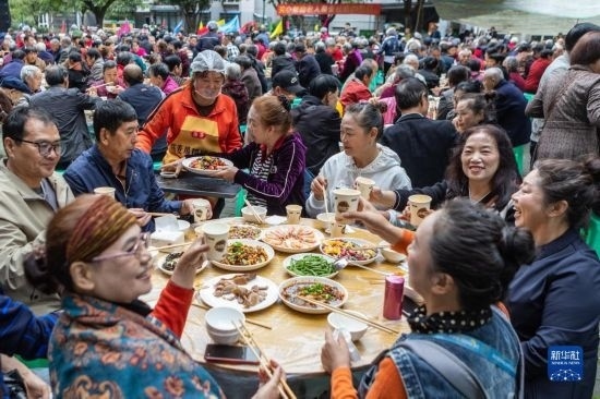 重陽(yáng)節(jié)前夕,重慶市九龍坡區(qū)華巖鎮(zhèn)石龍社區(qū)開(kāi)展“九九重陽(yáng)節(jié) 濃濃敬老情”主題活動(dòng)。600余位年滿(mǎn)60歲以上的社區(qū)老人共享“長(zhǎng)壽宴”,在歡聲笑語(yǔ)中迎接即將到來(lái)的重陽(yáng)節(jié)。