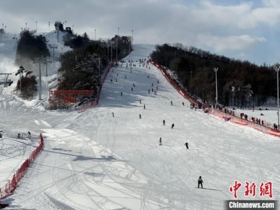 來自各地的游客在東北亞國際滑雪場(chǎng)體驗(yàn)滑雪。記者韓宏攝