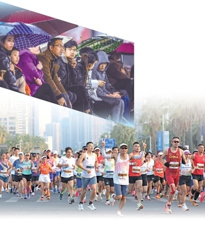 上圖:1月6日,2024年“村超”新賽季在貴州省榕江縣開賽。圖為觀眾在場邊觀賽。新華社記者 陶 亮攝 下圖:1月7日,2024廈門馬拉松賽舉行,3萬名選手參加。圖為選手在比賽中。陳 博攝(影像中國)