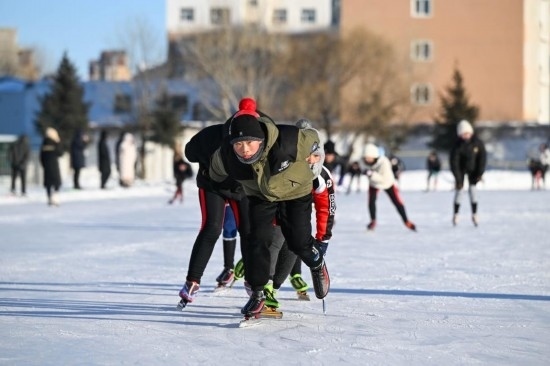 這個(gè)冬季,73歲的呼和浩特市民張凱也從輪滑“跨界”到了速滑?!岸斓孛嬗斜瑳]法玩輪滑了,‘十四冬’啟發(fā)了我們,可以換到冰場(chǎng)上去玩。”張凱說。