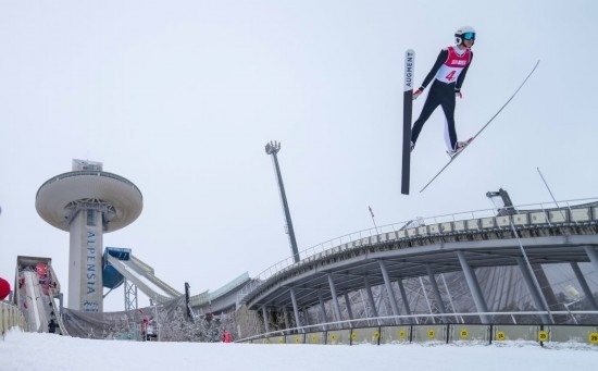 1月21日,跳臺滑雪混合團(tuán)體賽決賽中,中國組合任浩然、鄭鵬博、翁楊寧和唐嘉鴻以543.2分的成績獲得第十二名,圖為任浩然在比賽中。新華社記者 張笑宇 攝
