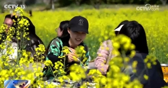 在宜昌市夷陵區(qū),這片油菜花田依山傍水,村居散落其中,構(gòu)成一幅優(yōu)美的田園畫卷。中午時分,一場小型音樂會在油菜花田中拉開帷幕,旋律與花海邂逅,如同大珠小珠落玉盤,叮叮當(dāng)當(dāng),又如泉水叮咚般悅耳。游客置身其間,吃著火鍋、品著咖啡,一切煩擾都被洗滌殆盡。