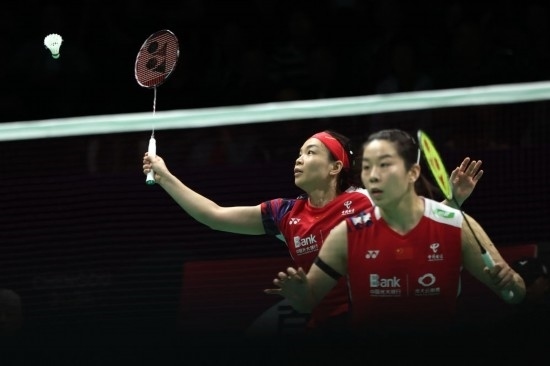 5月4日,中國隊組合陳清晨(左)/賈一凡在女子雙打比賽中。新華社記者 陳斌 攝