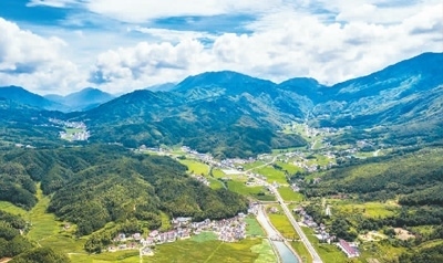 江西省靖安縣中源鄉(xiāng),漂亮的民居與夏日的田園、青山構(gòu)成了一幅美麗的畫卷。周 亮攝(人民圖片)