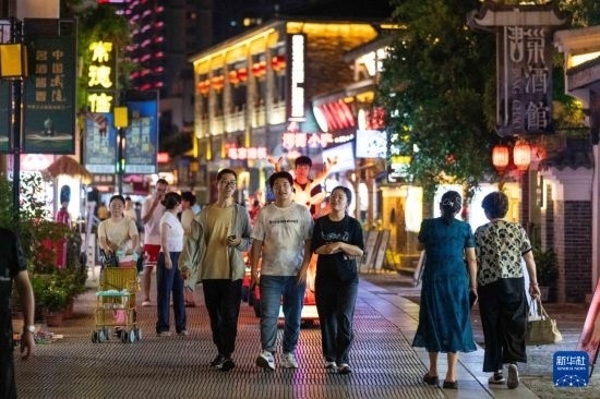 9月2日夜間,游客在常德河街游玩。