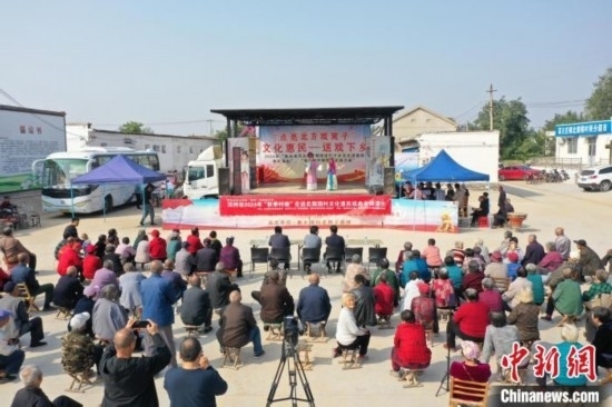 圖為河北衡水深州市高古莊鎮(zhèn)北梨園村,老人們觀看戲曲演出。 袁佳凱 攝