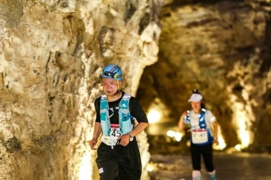 參賽選手在2024探秘貴州·翡翠綏陽(yáng)亞洲第一長(zhǎng)洞雙河洞山地穿越挑戰(zhàn)賽比賽途中。(綏陽(yáng)縣教體局供圖)