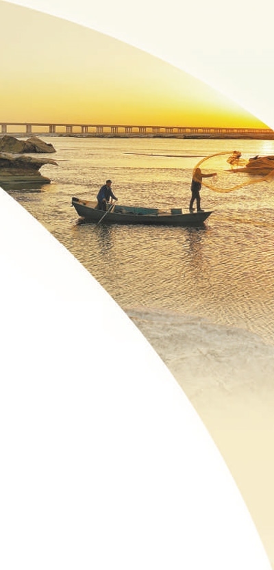 登上三盛公水利樞紐觀景平臺(tái),眼前豁然開(kāi)朗。黃河宛如一條巨龍,自天際蜿蜒而來(lái),在攔河閘壩的疏導(dǎo)和調(diào)控下,水流變得平緩有序。在這里,黃河被一分為二,一條仍沿主河道逶迤東去,一條則被引入由人工開(kāi)鑿的總干渠。