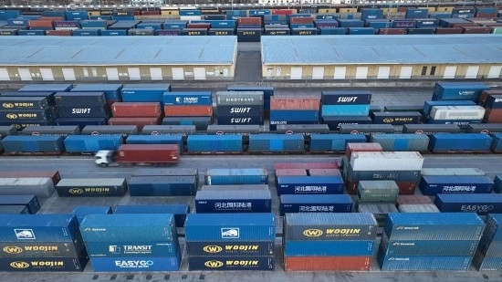 石家莊國際陸港的中歐班列裝車待發(fā)。