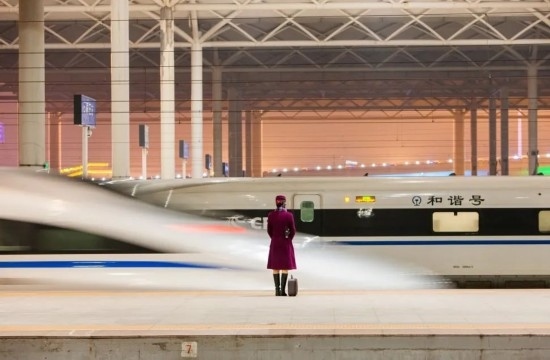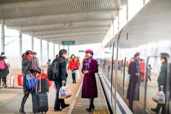 2018年春運(yùn),完成值乘任務(wù)的復(fù)興號列車長開心退乘。