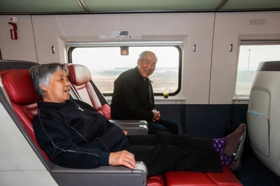 2015年,一對老兩口乘坐高鐵到北京與兒子過團(tuán)圓年,實(shí)現(xiàn)反向春運(yùn)。