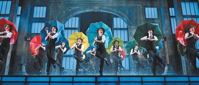 1952年,美國好萊塢經(jīng)典歌舞電影《雨中曲》上映,成為世界電影史上的不朽佳作。1983年,改編自電影的同名音樂劇在英國倫敦西區(qū)首演,并在此后的10余年間獲得諸多獎(jiǎng)項(xiàng)。2012年6月末的一天,我坐在倫敦皇宮劇院第一排,整晚在《雨中曲》水樣的浪漫氛圍中旋轉(zhuǎn)。2025年初春,這部音樂劇來到北京,最迷人的記憶依然是結(jié)尾處將觀眾“浸沒”的那場大雨。
