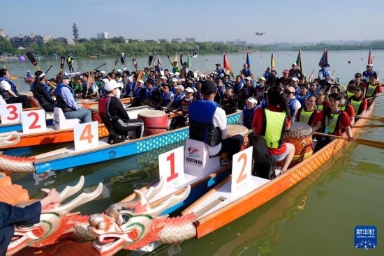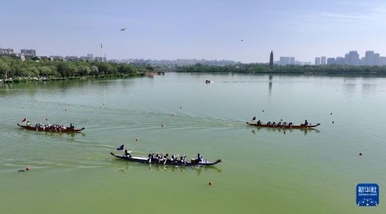 當(dāng)日,2025年“民族團(tuán)結(jié)杯”寧夏端午龍舟邀請賽在銀川市海寶公園舉行。來自寧夏全區(qū)的19支代表隊(duì)參加比賽,用龍舟賽的方式共度端午假期。
