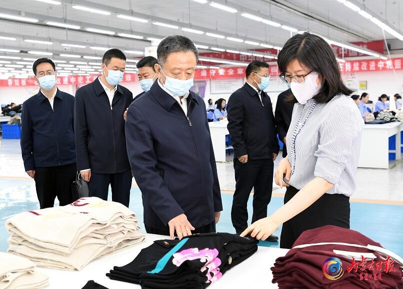 5月31日,自治區(qū)黨委書(shū)記孫紹騁來(lái)到鄂爾多斯高新技術(shù)產(chǎn)業(yè)開(kāi)發(fā)區(qū)輕紡產(chǎn)業(yè)園,走進(jìn)鄂爾多斯集團(tuán)羊絨研發(fā)中心、生產(chǎn)車(chē)間和產(chǎn)品展廳,深入了解企業(yè)技術(shù)人才引進(jìn)、產(chǎn)品開(kāi)發(fā)及生產(chǎn)經(jīng)營(yíng)等情況。本報(bào)記者袁永紅攝
