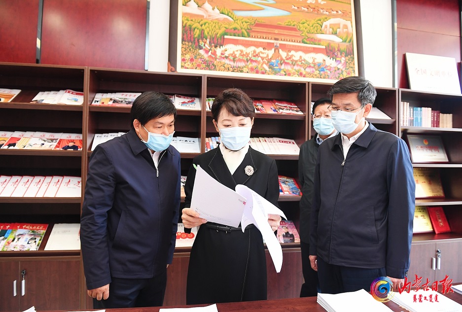 6月6日,王莉霞到財(cái)政部?jī)?nèi)蒙古監(jiān)管局走訪,認(rèn)真翻閱山水林田湖草沙系統(tǒng)治理和生態(tài)型草種調(diào)研報(bào)告。記者韓卿立攝