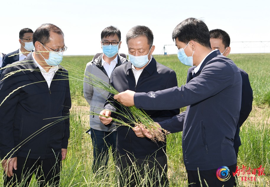 6月18日,自治區(qū)黨委書記孫紹騁在呼倫貝爾市陳巴爾虎旗羊草擴(kuò)繁基地調(diào)研。內(nèi)蒙古日?qǐng)?bào)社融媒體記者 袁永紅 攝