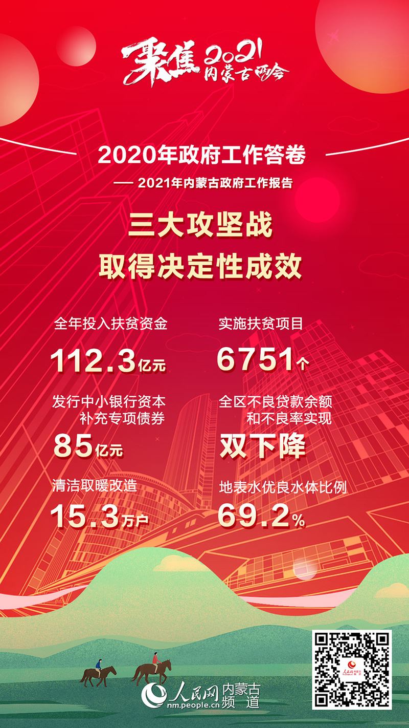 1月26日上午,內(nèi)蒙古自治區(qū)十三屆人大四次會議在內(nèi)蒙古人民會堂開幕。自治區(qū)主席布小林作政府工作報告。2020年是極不平凡的一年,內(nèi)蒙古緊扣全面建成小康社會目標任務(wù),堅持穩(wěn)中求進工作總基調(diào),堅持以人民為中心,科學統(tǒng)籌疫情防控和經(jīng)濟社會發(fā)展,扎實做好“六穩(wěn)”工作,全面落實“六?!比蝿?wù),全區(qū)經(jīng)濟持續(xù)回穩(wěn),社會大局和諧穩(wěn)定,“十三五”規(guī)劃順利收官。2020年政府工作有哪些亮點?看內(nèi)蒙古書寫這份精彩答卷!
