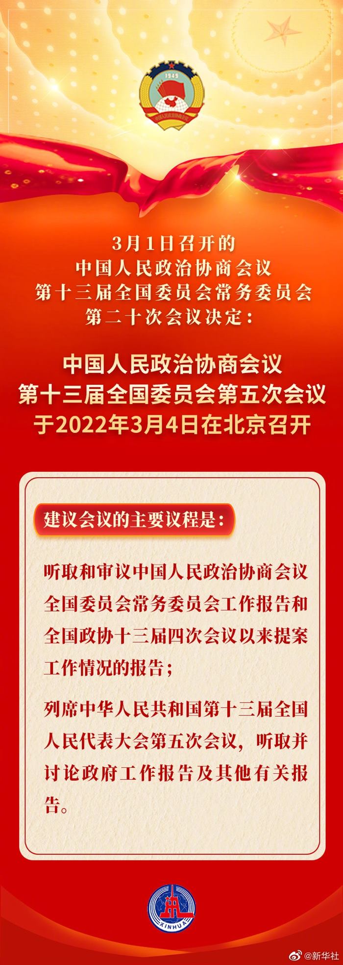 權(quán)威快報(bào)丨全國(guó)政協(xié)會(huì)議議程來了