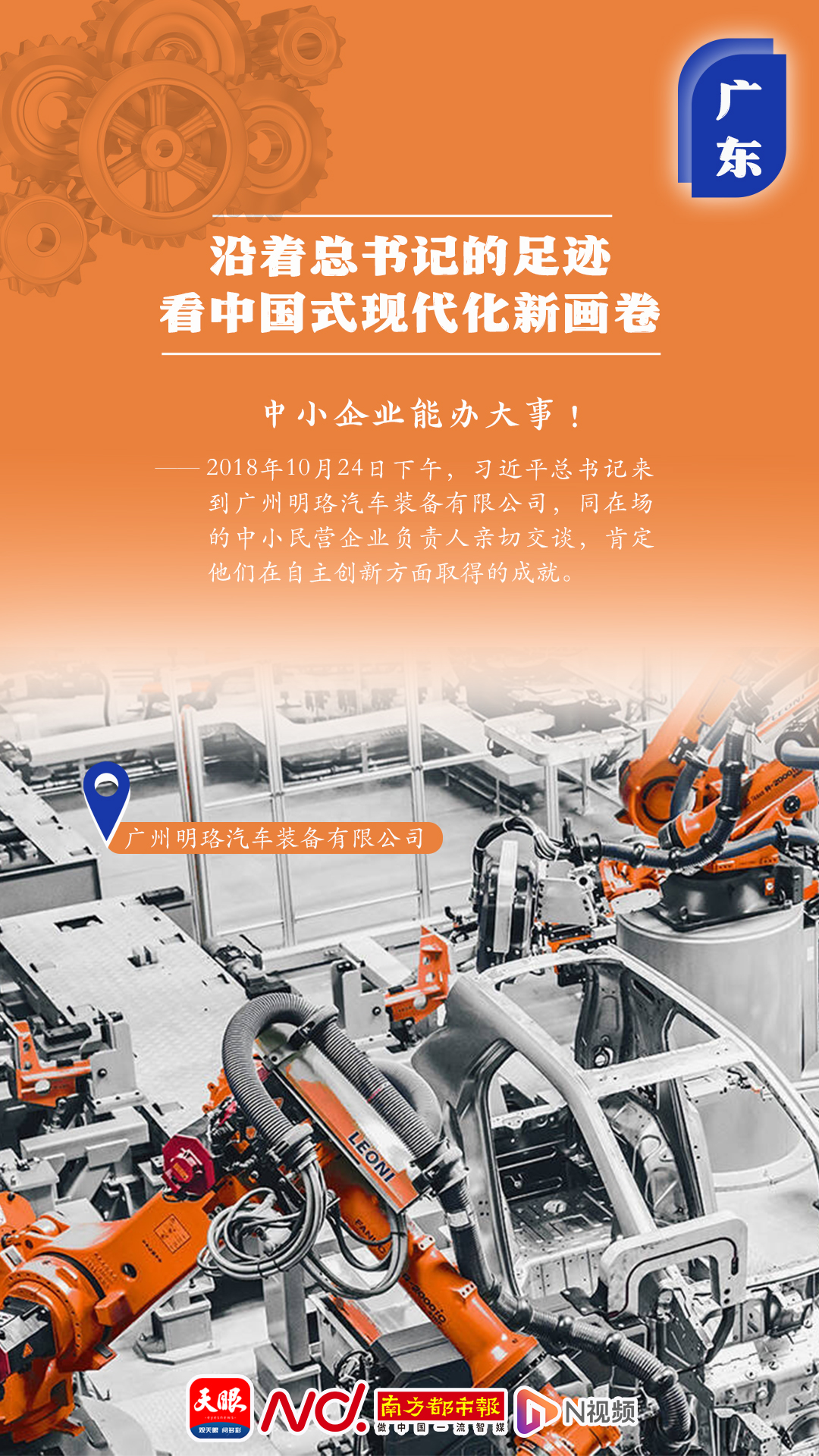 “中小企業(yè)能辦大事!”2018年10月24日下午,習(xí)近平總書記來(lái)到廣州明珞汽車裝備有限公司,同在場(chǎng)的中小民營(yíng)企業(yè)負(fù)責(zé)人親切交談,肯定他們?cè)谧灾鲃?chuàng)新方面取得的成就。